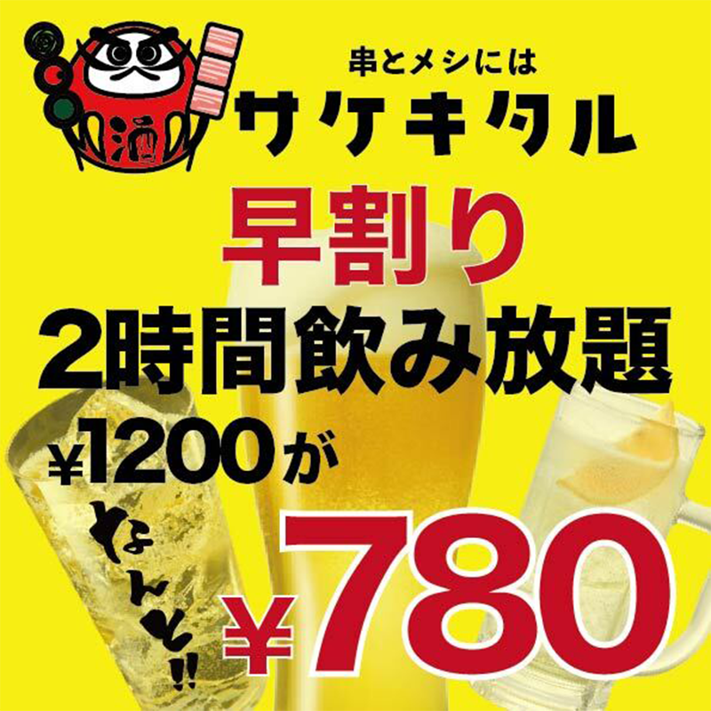 大特価の早割り飲み放題!